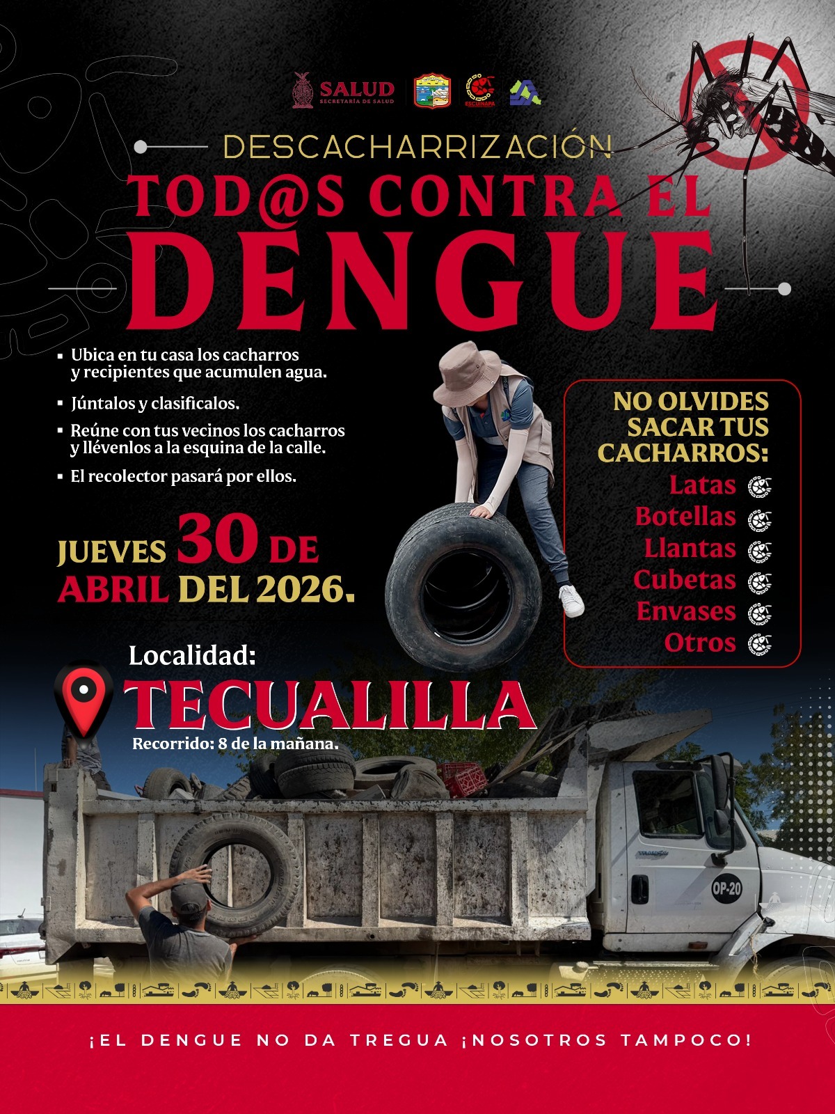 Recuerda que la limpieza empieza en casa y, si todos participamos, mantenemos a Tecualilla libre de enfermedades. ¡Prevenir el dengue es tarea de todos!